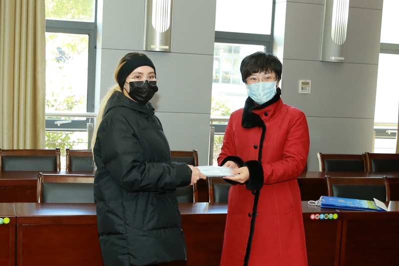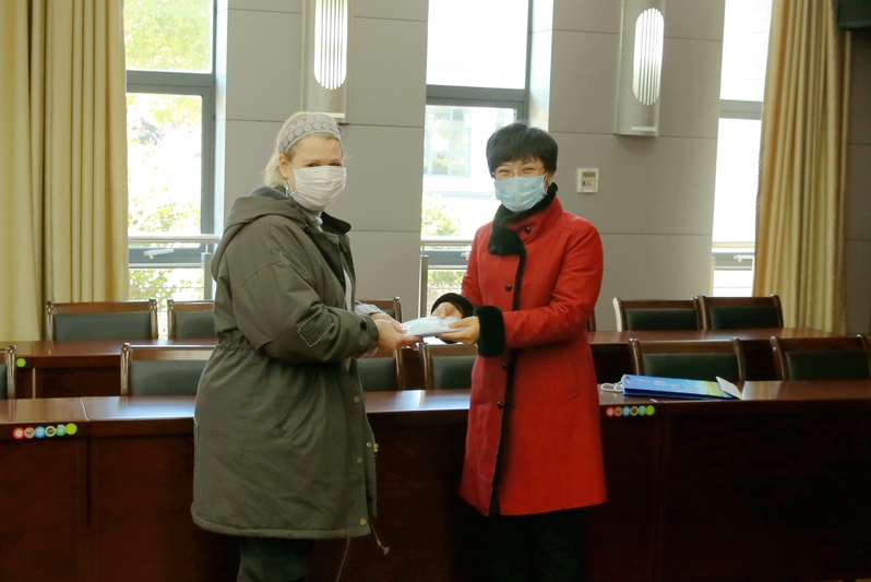 黄志纯介绍了beat365寒假期间留校外籍教师和留学生防控疫情的做法。外籍教师和留学生代表介绍了学校为他们在疫情防控方面提供的周到服务,他们表示,在beat365中文登录入口生活很安全,对中国取得抗击疫情的胜利充满信心。董玲玲还代表市外办向外籍教师和留学生代表赠送了防护口罩。