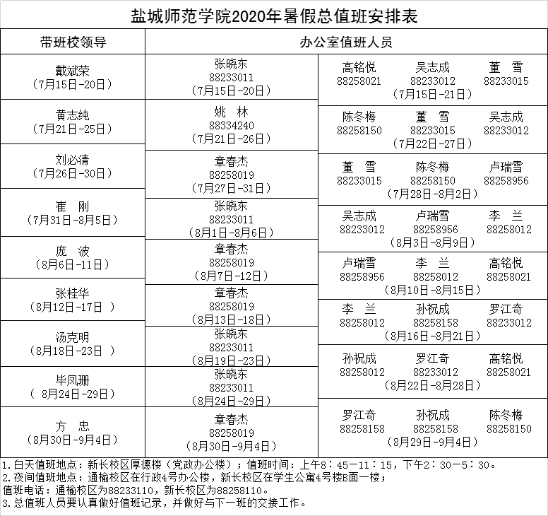 beat365中文登录入口2020年暑假总值班安排表