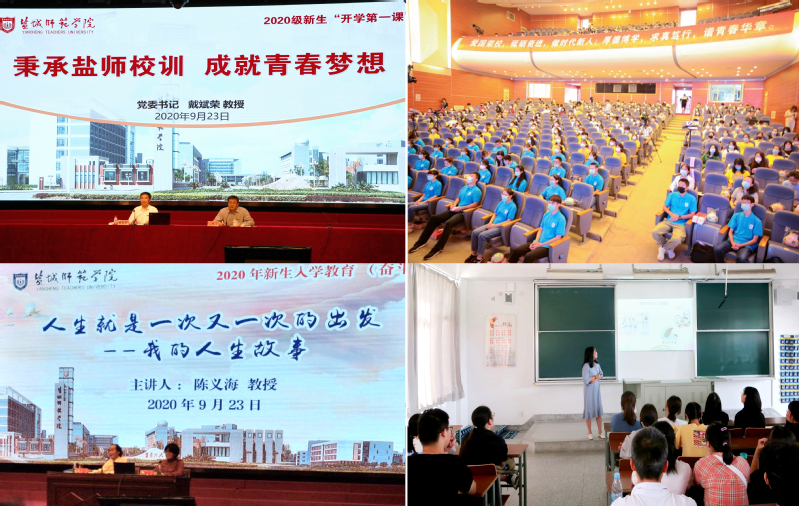 9月23日上午,党委书记戴斌荣教授为2020级本科新生讲授“开学第一课”,戴斌荣以“秉承盐师校训 成就青春梦想”为主题,他勉励全体新生,要坚定理想信念,永葆青春爱国志;要磨砺知识“硬核”,练就专业真本领;要保持“耳聪目明”,激发无穷探索力;要勇于躬身实践,且行且悟且成长。