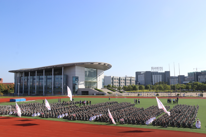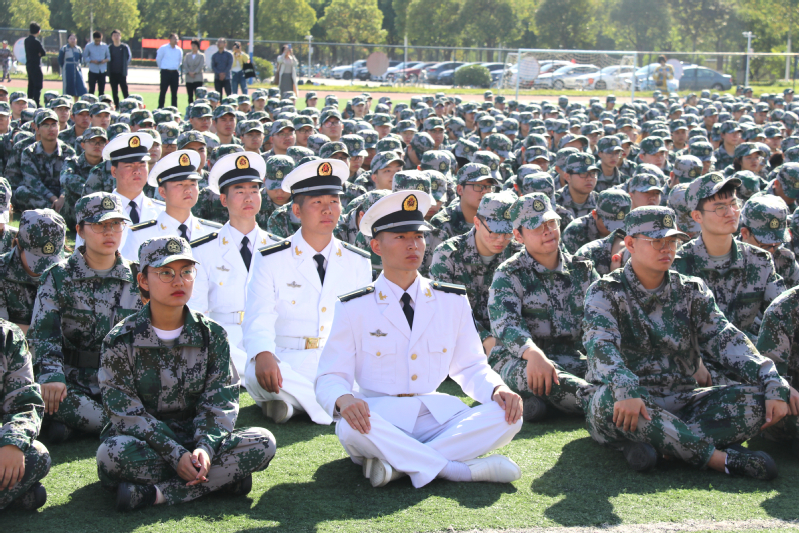 军训团成员、军训教官、各二级学院军训负责人、军训辅导员以及2020级全体新生参加大会。
