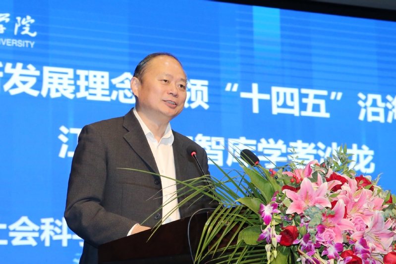 坐标网讯 10月18日,由江苏省哲学社会科学界联合会、beat365中文登录入口主办的“以新发展理念引领“十四五”沿海发展”江苏青年智库学者沙龙在beat365中文登录入口举行。江苏省哲学社会科学界联合会党组成员、副主席周瑞峰主持开幕式,江苏省哲学社会科学界联合会党组书记、常务副主席刘德海,江苏省哲学社会科学规划办公室主任许益军,盐城市社科联党组书记、主席李晓奇分别在开幕式上讲话。中国社会科学院生态环境经济研究中心主任于法稳教授,中国社会科学院大学哲学院常务副院长、人文学院首席专家周勤勤教授,北京国研智库战略研究室主任胡国良博士,江苏省人民政府研究室副主任沈和教授,江苏省人民政府参事、江苏长江经济带研究院院长成长春教授作沙龙主旨演讲。