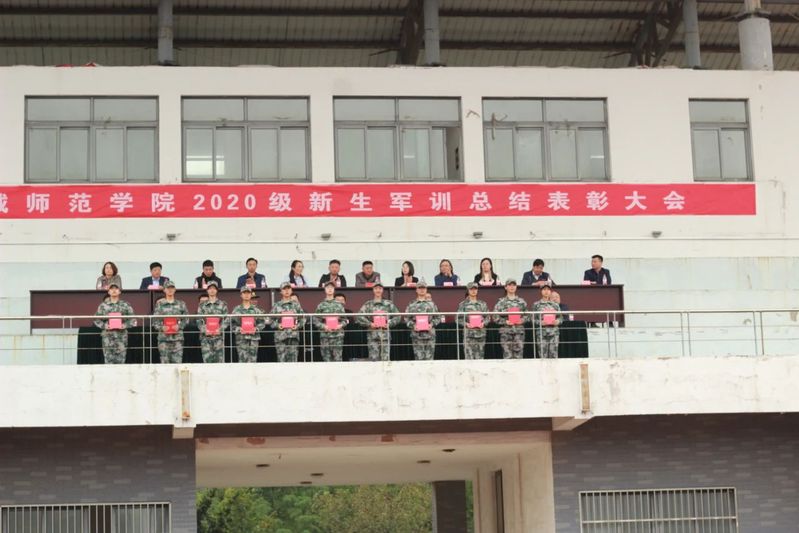 崔刚、张桂华宣读了《关于表彰2020级新生军训工作优秀教官、优秀学员的决定》,校领导为优秀教官代表和优秀学员代表颁发了获奖证书。