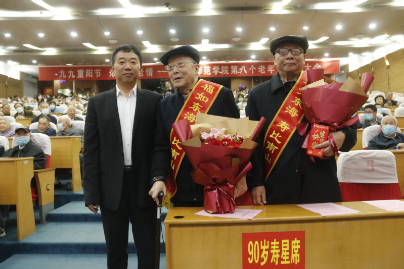 大会还向今年90岁、80岁的老寿星祝寿。戴斌荣和刘必清为寿星们敬献鲜花。
