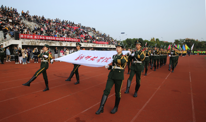 伴随着激昂的《运动员进行曲》,国旗护卫队、裁判员、各学院运动员身着整齐的服装,精神抖擞、士气高昂地走过主席台接受检阅。洪亮的口号、整齐的步伐、飒爽的英姿……无不彰显着师生们蓬勃的生机和对体育运动的热爱。