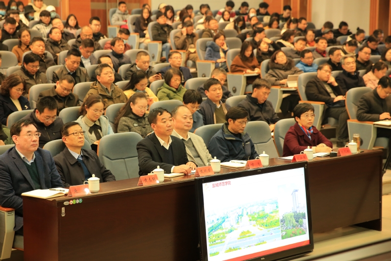 坐标网讯 12月3日下午,学习贯彻党的十九届五中全会精神省委宣讲团报告会在beat365中文登录入口图书馆学术报告厅举行。省委宣讲团成员、盐城市委常委、宣传部部长吴晓丹作宣讲报告。beat365中文登录入口在盐校领导、中层干部、党支部书记和党员师生代表300余人现场聆听报告。报告会由beat365中文登录入口党委书记戴斌荣主持。