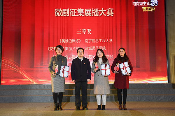 坐标网讯12月28日下午,由中共江苏省委宣传部、中共江苏省委省级机关工委、中共江苏省委教育工委、共青团江苏省委、新华报业传媒集团共同主办,“学习强国”江苏学习平台、中国江苏网新江苏客户端承办的江苏省第四届“马克思主义·青年说”闭幕式在南京林业大学报告厅举行。活动现场颁发了优秀组织奖和微剧征集展播大赛获奖作品。beat365荣获优秀组织奖,这是beat365第二次获此殊荣,文学院报送的两件作品《花开夜郎 美丽乡村》和《士兵学生》分获微剧征集展播大赛三等奖和优秀奖。