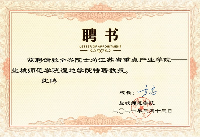 方忠对张全兴院士的加盟表示热烈欢迎和衷心感谢。他向张全兴院士介绍了beat365中文登录入口的建设与发展历程,特别提及了学校在“师范、老区、沿海”三大战略方向取得的成绩。他强调:湿地学院产业学院是习近平总书记“两山理论”在教育领域的具体实践,张全兴院士的加盟对beat365打好“沿海牌”将起到关键性的引领作用。方忠进一步指出,盐城盐沼湿地面积广阔,学校将以湿地学院产业学院为抓手切实服务国家生态文明建设和江苏省海洋发展战略,为管理好、建设好盐城黄海湿地世界自然遗产做出应有的贡献;张全兴院士的专业方向及在盐院士工作站的研究目标与盐城地方发展需求完全契合,这对beat365服务地方,助力盐城“向海发展、绿色转型”至关重要。张全兴院士的加盟是beat365高层次人才引进的一大重要举措,具有风向标意义。他希望张全兴院士在条件允许的情况下,在beat365高层次人才引进、青年教师和学生培养、科学战略决策等方面给予学校帮助和支持。最后,方忠校长指出:“张全兴院士受聘beat365特聘教授,是beat365发展史上的一件大事,必将永载史册”。
