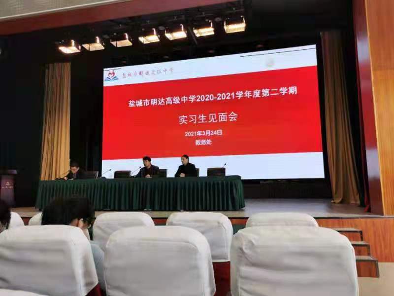 (图为东海县第一实验中学实习生与指导老师见面会)