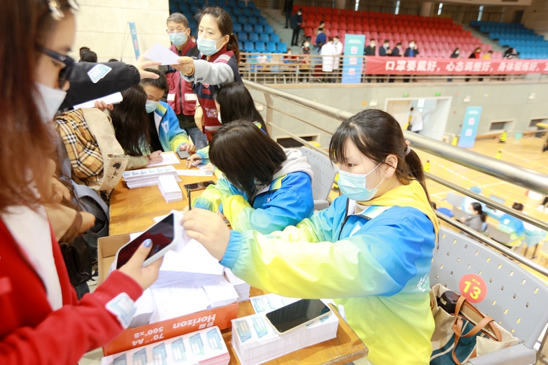 4月8日上午,新长校区体育馆内外秩序井然。馆内设置的临时接种点现场被分为等候、登记、接种、留观等区域。前来接种的师生经测温、扫码登记后进入馆内,医务人员为其讲解注意事项,随后扫描身份证登记进行接种。完成接种后,接种人员需在场馆内观察区隔位就坐,留观半小时后无任何不适方可离开。