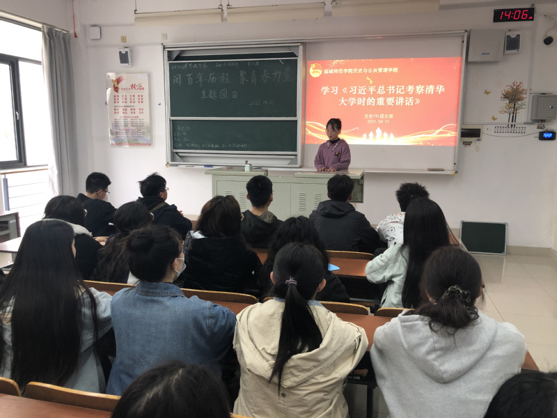历史与公共管理学院党委书记孙玉峰表示,习近平总书记的重要讲话充分体现了党对教育事业的高度重视,作为一名高校基层党务工作者,要时刻牢记“培养什么人、怎么培养人、为谁培养人”这一根本问题,始终带头坚持党的领导,坚守教育的初心使命,引导教师坚定信念,自觉做中国特色社会主义的坚定信仰者和忠实实践者,为培养堪当民族复兴大任的时代新人而不懈努力。历史181班陈家伟同学说:“习近平总书记考察清华大学的讲话为‘生逢盛世,肩负重任’的当代中国青年明确了奋斗目标。我们要将青春积极融入服务人民、贡献社会的实践中,不断从中汲取奋进力量,做有理想、有追求,勇担强国重任的新时代青年!”