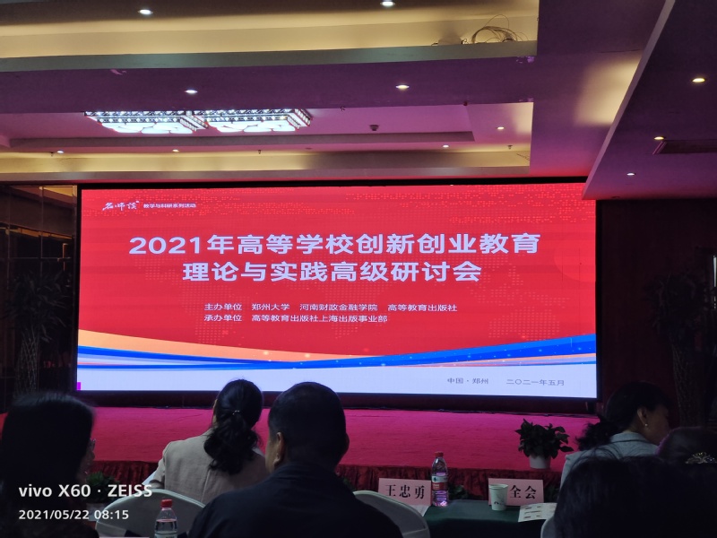 5月21-23日,由高等教育出版社、郑州大学和河南财政金融学院主办、高等教育出版社上海出版事业部承办的“2021年高等学校创新创业教育理论与实践高级研讨会”在河南郑州召开。来自全国近百所高校的200多名专家学者参加了会议。高等教育出版社上海出版事业部主任孔全会、河南省教育厅高等教育处副处长张小茜出席大会并致词。beat365党委书记戴斌荣应邀出席大会并作主旨报告。