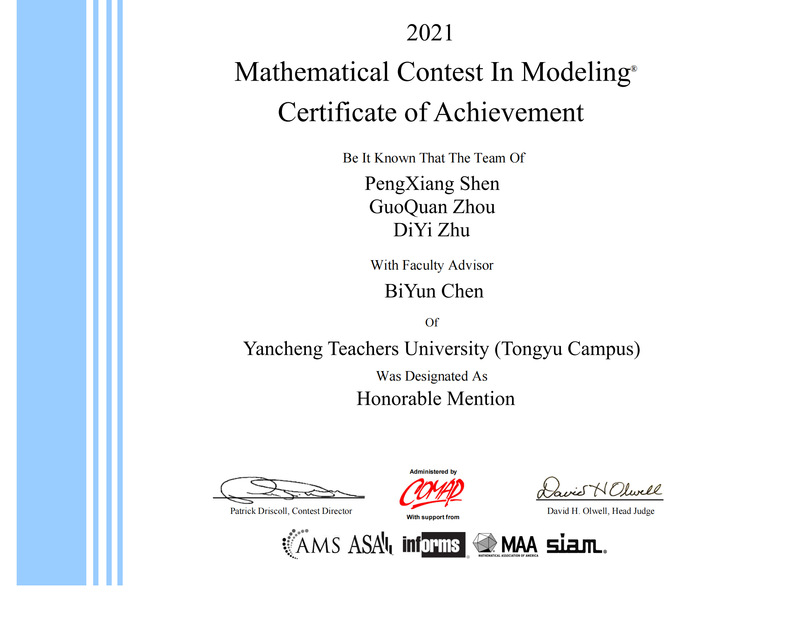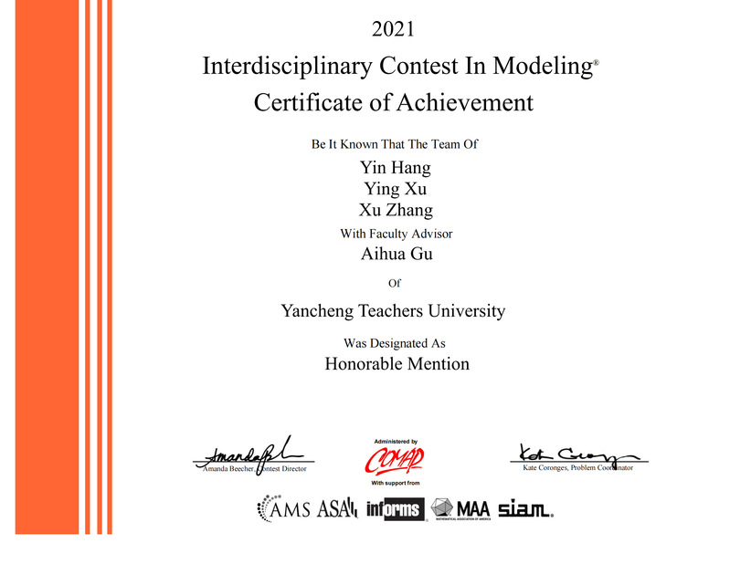 近日,2021年美国大学生数学建模竞赛(MCM/ICM)成绩已在其官网公布,在疫情防控的严峻形势下,在国际一等奖(M奖)和国际二等奖(H奖)获奖比例减半的新规则下,beat365学子迎难而上,共5支参赛队伍喜获国际二等奖(Honorable Mention),其中数学与统计学院1支队伍、信息工程学院4支队伍获奖。