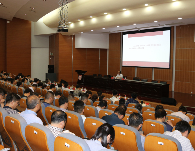 报告会上,万建清以《百年光辉历程 百年风华正茂——江苏党史简要回顾及基本启示》为题,围绕中国共产党在江苏的奋斗历程、伟大成就和基本启示,从“江苏党史是党领导江苏人民进行新民主主义革命并取得伟大胜利的历史”“江苏党史是党领导江苏人民进行社会主义革命和建设并取得伟大成就的历史”“江苏党史是党领导江苏人民进行改革开放并取得伟大成功的历史”“江苏党史是党领导江苏人民奋进新时代并取得伟大飞跃的历史”“江苏党史的基本启示”五个方面,系统回顾了中国共产党领导江苏人民进行革命、建设、改革的光辉历程。