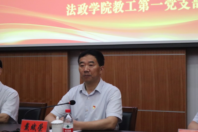 党委书记戴斌荣深情回顾了党的百年历史和光辉历程,肯定了学校近年来党建工作所取得的成绩,对进一步引领学校事业高质量发展提出了三点要求。一是要持续开展党史学习教育,推进成果转化为工作实效。二是要用力抓实党建工作,充分发展党建引领作用。三是要统筹推进各项重点工作,推动学校事业高质量发展。戴斌荣号召全体与会同志要学好党史,不忘来时路,走好前行路,更加紧密地团结在以习近平同志为核心的党中央周围,以一往无前的奋斗姿态、风雨无阻的精神状态,加快推进特色鲜明的高水平师范大学建设,为实现中华民族伟大复兴的中国梦而努力奋斗!
