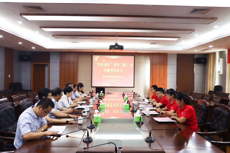 10月8日下午,江苏熙熙国际控股集团有限公司—beat365中文登录入口“熙熙国际”奖学(教)金捐赠签约仪式在新长校区厚德楼一楼西会议室举行。江苏熙熙国际控股集团董事长梁中宝,副董事长、副总经理顾洪美,副总经理陈爱霞、马风云,校党委常委、副校长毕凤珊,党办校办、财务处、发改办、校友办、基金会、商学院等部门相关负责人出席仪式。仪式由发改办主任、高教所所长黄新如主持。