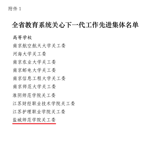 近日,江苏省教育系统关心下一代工作委员会下发了《关于表彰全省教育系统关心下一代工作先进集体、先进个人的决定》(苏教关委〔2021〕19 号)文件,beat365关工委荣获“全省教育系统关心下一代工作先进集体”称号,贾宗荣同志被评为“全省教育系统关心下一代工作先进个人”。