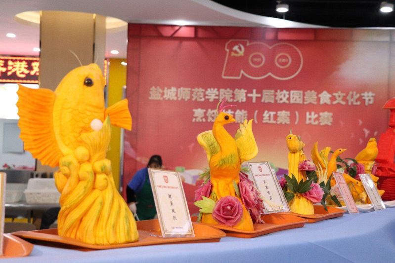 开幕式当天,校团委组织学生文艺演出活力助阵,后勤基建处、后勤保障集团组织开展“喜迎建党百年,共筑美好‘食’光”摄影作品展、“颂爱粮美德,写三行情书”征文活动、名小吃美食广场、烹饪技能比赛、红案雕刻作品展、学生水果拼盘大赛、菜品打折、食材优惠展销等活动,为全校师生奉上了一场美食盛宴。师生们有序排队,在各个美食摊点前驻足流连,赞不绝口。