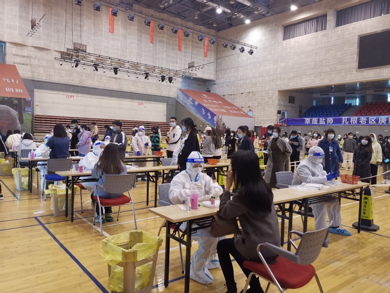 哪里有困难,哪里就有党员志愿者的身影。在核酸检测点,志愿者们在接受简短的专业培训后,就地“转岗”,瞬间化身为温暖的“大白”,“全副武装”负责采样码扫码工作,与医护人员配合默契、并肩作战,用实际行动诠释了师者仁心与风骨。在通榆、新长两个校区校门处,志愿者们化身为“引导员”“检测员”,协助安保人员做好“两码”检查、体温监测,做好校园车辆引导,及时处置相关重要事项,把好“校园入口关”。在食堂、学生公寓、教育超市等人员相对聚集区,志愿者们化身为“宣传员”“督导员”,及时提醒师生戴好口罩,保持一定社交距离,及时记录反馈校园安全隐患……