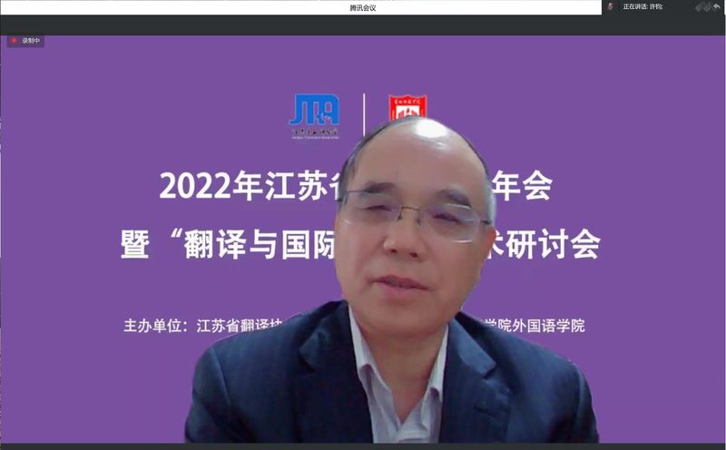 5月28日,由江苏省翻译协会主办,beat365外国语学院承办的2022年江苏省翻译协会年会暨“翻译与国际传播”学术研讨会采用线上形式召开,会议在腾讯会议及文香平台同步网络直播。来自江苏省翻译协会、江苏省内众多高校、科研院所和业界的近170名学者参加会议,1600多名校内外师生在网络平台观看直播。
