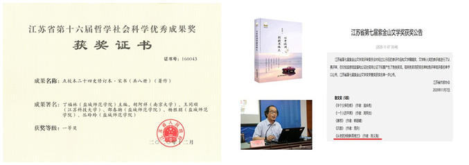 科研之路漫漫而修远,科研工作者无不需要深稽博考的精神。文学院科研事业经过“坐冷板凳,下死功夫”的多年积淀,实现从一星半点到其后的井喷之势,从单一的年度项目到青年项目、一般项目、后期项目的多角度突破,从一般层次项目到重大、重点项目的不断斩获。近四年来,文学院共承担国家社科基金项目9项、省部级科研项目22项。出版著作24部,发表论文217篇,其中C刊以上期刊论文30篇。丁福林教授是著名的魏晋南北朝文史研究专家,他带领文学院青年教师深耕领域十余年,出版了《宋书》(2018)这一重量级古籍整理成果,2020年获得江苏省第十六届哲学社会科学优秀成果一等奖。此外,冯青青博士的《苏北方言语音研究》获得省哲社优秀成果三等奖。陈义海教授的散文集《从老欧洲到新英格兰》获得第七届江苏省紫金山文学奖,这是继2011年获得紫金山文学奖(诗歌奖)之后的又一次折桂。