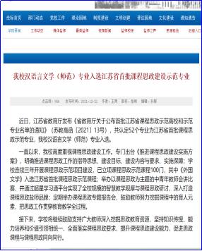 辛勤耕耘,学院专业建设喜结硕果。2019年汉语言文学专业获批国家一流本科专业建设点、江苏省成人高等教育重点专业;汉语言文学(师范)专业通过国家师范专业二级认证复评工作、完成秘书学专业论证工作,2020年完成广播电视新闻学专业认证工作;《劳动成就梦想——劳动教育理论与实践》入选江苏省重点教材。2021年“新文科建设背景下中华传统优秀文化创造性转化的研究与实践”获批教育部首批新文科建设理论与实践项目,《语文课程与教学论新编》获批江苏省重点教材立项,“新文科背景下汉语言文学专业师范生中华文化传承能力培养的探索与实践”获批2021年江苏省教改研究重点课题,汉语言文学专业获批江苏省思政特色建设专业。
