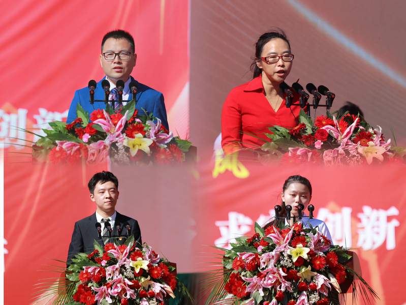 在校生代表、物理与电子工程学院2019级物理学(师范)专业许峻杰同学则用切身感受深情勉励广大新生:“时代各有不同,青春一脉相承。愿你我都能在青春的赛道上跑出属于当代青年的最好成绩。”