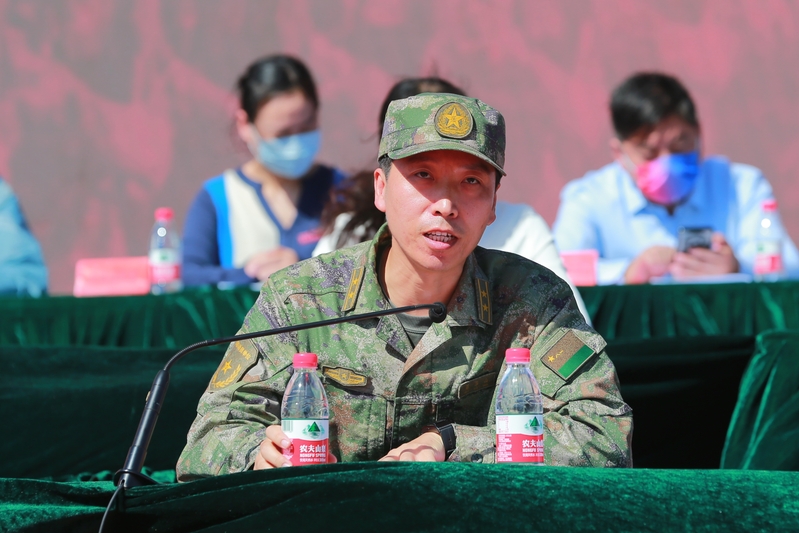 动员会上,新生代表王渴遇和教官代表徐子豪分别做表态发言。