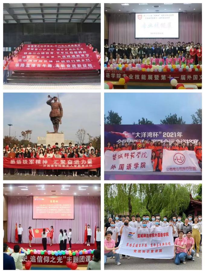定期举办中俄、中韩大学生文化艺术节、多语种演讲大赛、专业技能展演等活动,开展“青春心向党 建功新时代”十米长卷手绘等活动,朝鲜语专业师生经常性承担中韩合作论坛等政府会务志愿服务工作,学院每年组织千余名大学生分赴贵州、黑龙江等30多个省市开展手绘乡村、爱心课堂等志愿服务,充分发挥学生“第二课堂”活动育人功能。学院获江苏省“五四红旗”团总支、江苏省青年志愿服务行动组织奖、江苏省“博爱青春”十佳项目、江苏省青年创益项目大赛“银奖”等荣誉。1名同学获全国大学生自强之星,1名同学获聘盐城市青年友好使者。