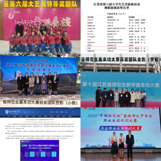在学院的努力下,学生各方面成绩显著。近5年来学生就业率保持在98%以上,15名学生获得国家奖学金,10名学生被表彰为省级优秀学生干部或者省三好学生,150余名学生考上研究生,其中30余名学生被985、211高校录取,3名学生被录取为选调生;学生在各级各类比赛中获奖,由我院学生编排并表演的舞蹈《风筝》获省大学生艺术展演特等奖,省师范生教学基本功大赛获奖率100%,一等奖近20项,一等奖数及获奖率全省第一且遥遥领先,心理学专业学生获全国大学生心理辅导教学创新一等奖,10多篇毕业论文获省优秀毕业论文,1名学生被评为江苏省优秀毕业生,2名学生被评为校优秀共产党员,10多名学生在省、市、校级创业大赛中获奖;毕业生快速成长为所在行业的骨干,6人为国内知名高校博导硕导,150余名毕业生成长为幼儿园园长、小学校长,300多名毕业生成长为教学名师。