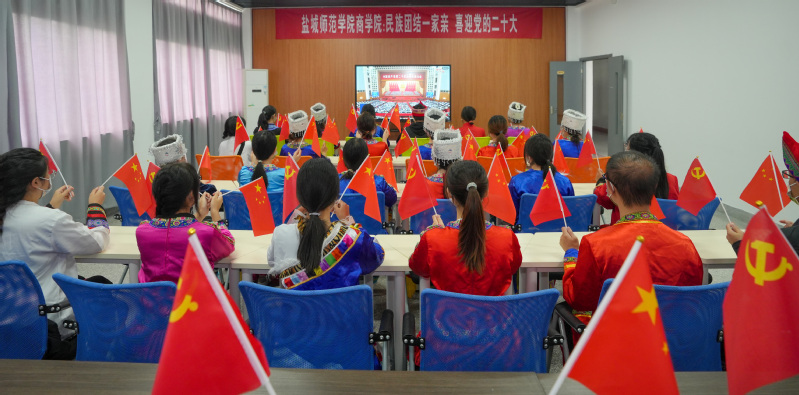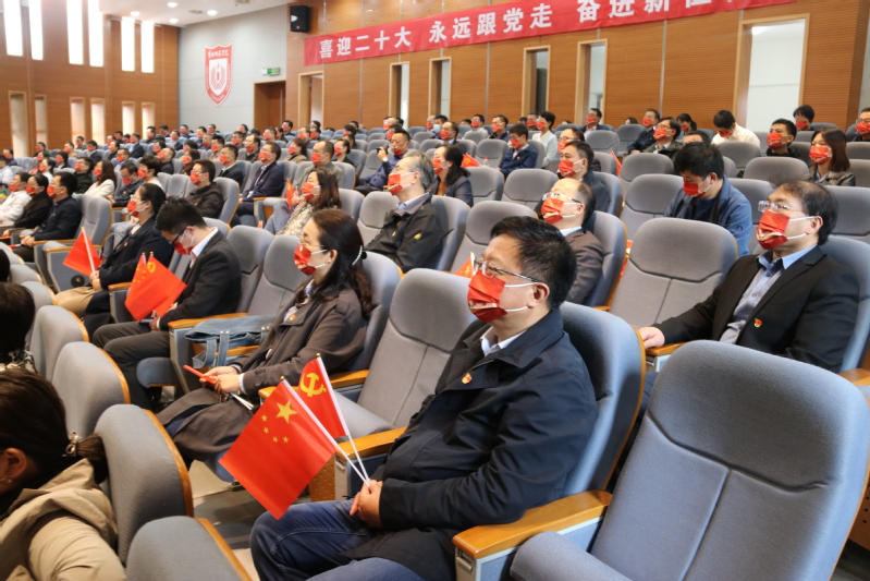 10月16日,中国共产党第二十次全国代表大会在北京隆重召开。上午10时,全校师生以饱满的热情收听收看党的二十大开幕会盛况。收听收看采取1个主会场+24个分会场的形式。全体在盐校领导、部分中层干部、党支部书记、党外人士代表在新长校区学术报告厅主会场收看开幕会。