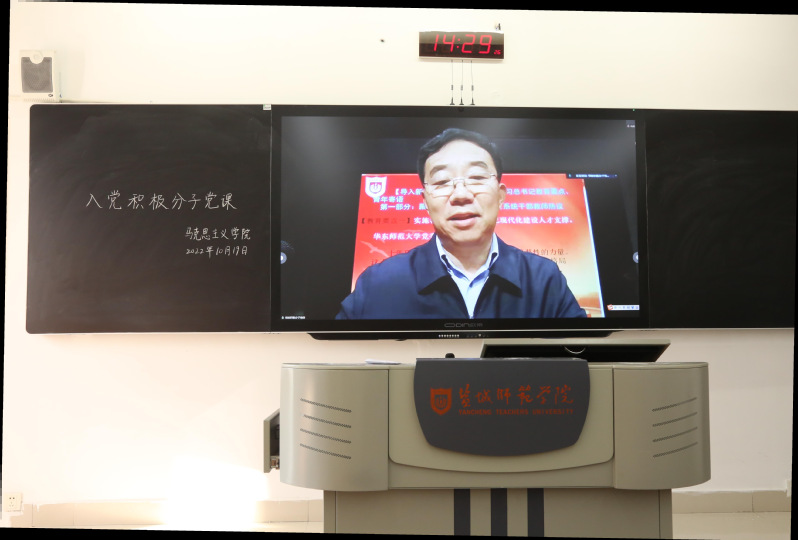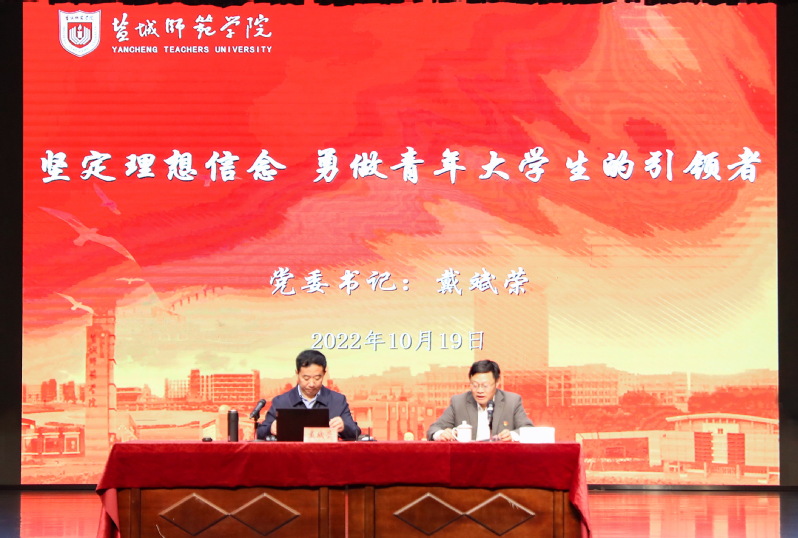 10月19日下午,学校党委书记戴斌荣在新长校区音乐厅给入党积极分子作题为“坚定理想信念 勇做青年大学生的引领者”的专题报告。