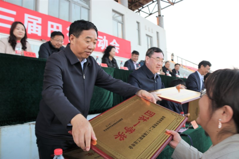 学校教务处处长、体育运动会委员会副主任岳峰宣读《beat365中文登录入口体育运动委员会关于表彰第二十三届田径运动会优秀运动员、优秀裁判员和体育道德风尚奖代表队的决定》。本届运动会赛事主管、体育学院党委书记祁龙祥宣布比赛结果。