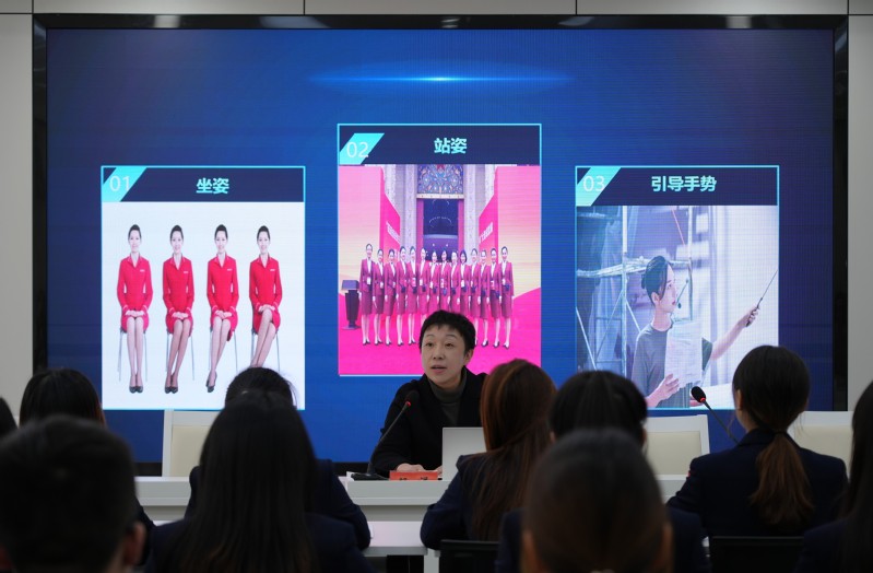 培训班上,三位老师结合讲解实践,专题讲授讲解员的服饰着装、仪容仪态、指板走位、沟通交流等要点及注意事项。实践指导环节中,三位老师带领大学生讲解员分别在学校王强先进事迹展览室和校史馆进行实地演练。通过现场教学,对讲解员进行了一对一的规范指导,现场互动活跃。
