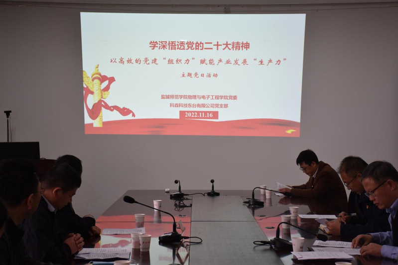 科森科技东台有限公司和物理与电子工程学院党委领导班子、各专业系主任、党员教师及学生代表50余人参加活动。