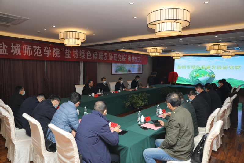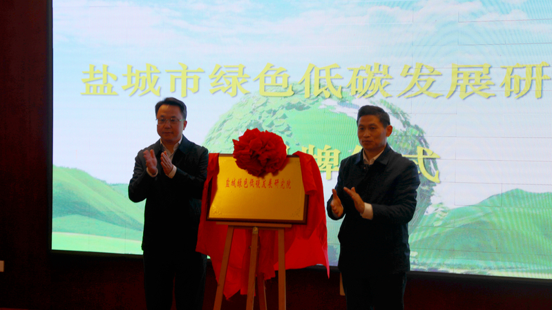 揭牌仪式上,学校社科处负责同志报告研究院的具体组织架构和建设方案。汤如军和张宏如共同为“盐城绿色低碳发展研究院”揭牌。