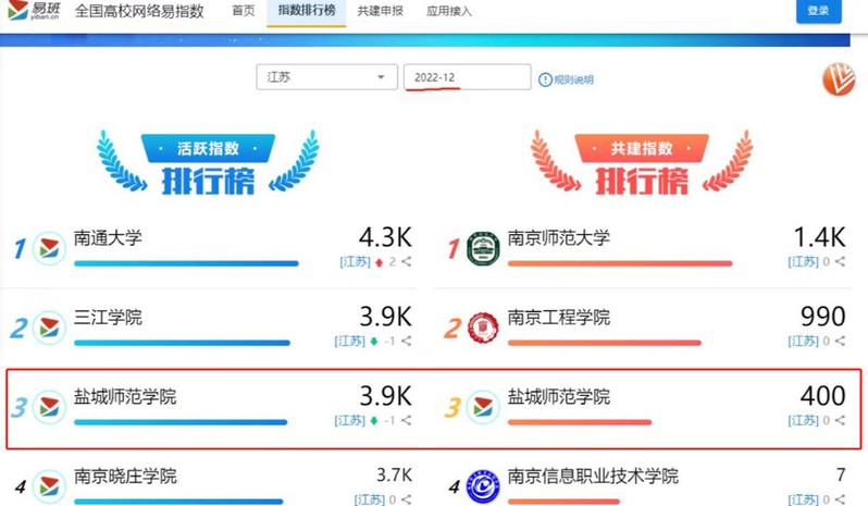 日前,教育部易班发展中心公布了2022年12月全国高校网络易指数排行,beat365活跃指数和共建指数均获全省第3名。一直以来学校高度重视“易班”建设工作,成立工作专班,强化队伍建设,设立专项资金,保障硬件设施,加强软件建设,开展系列活动,积极建设网络文化,巩固网络阵地。
