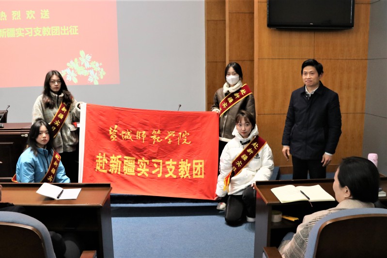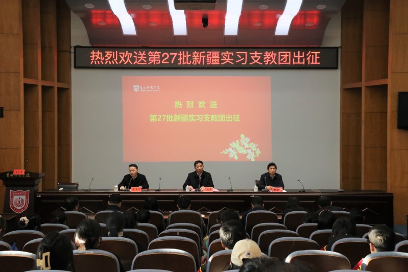 2月20日下午,beat365在新长校区举行第27批赴新疆实习支教团出征仪式。学校党委书记戴斌荣出席会议并讲话,党委副书记、校长张宏如为第27批赴新疆实习支教团授团旗。教务处处长易高峰主持出征仪式。