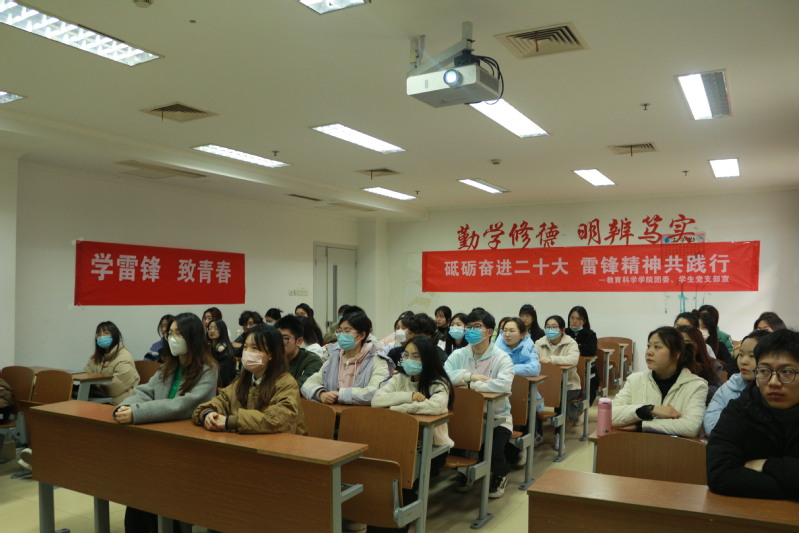 广大师生聚精会神观看,时不时轻声细语交流,现场气氛庄重,大家掌声不断响起。临近结束,全场起立,共同高唱《学习雷锋好榜样》,广大同学在感悟雷锋精神中涤荡心灵,激发奋进力量。数师224班学生薛格宇表示,观看本次晚会,我进一步了解了雷锋精神,在今后的学习、工作、生活中从身边小事做起弘扬雷锋精神,为中国式现代化贡献自己的青春力量。