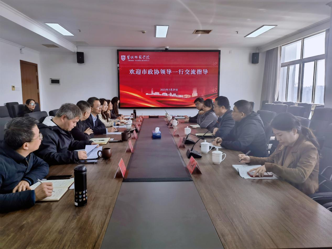 3月29日上午,盐城市政协港澳台侨(外事)委员会主任陈乃军、研究室副主任商中兵等一行来beat365教育科学学院调研指导工作。学校党委副书记于建江,教育科学学院领导班子出席座谈会,beat365九三支社主委、盐城市政协委员、江苏省心理与认知科学大数据重点建设实验室常务副主任陆芳主持会议。