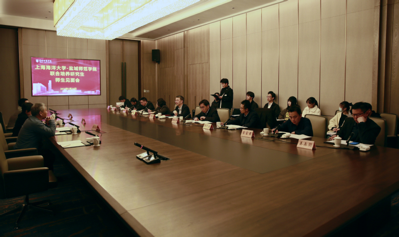 3月28日,上海海洋大学校领导一行来盐考察与beat365合作开展硕士研究生联合培养工作情况。上海海洋大学党委副书记、校长万荣,beat365党委副书记于建江出席联培工作会议。盐城市政协副主席、beat365湿地学院院长唐伯平主持会议。