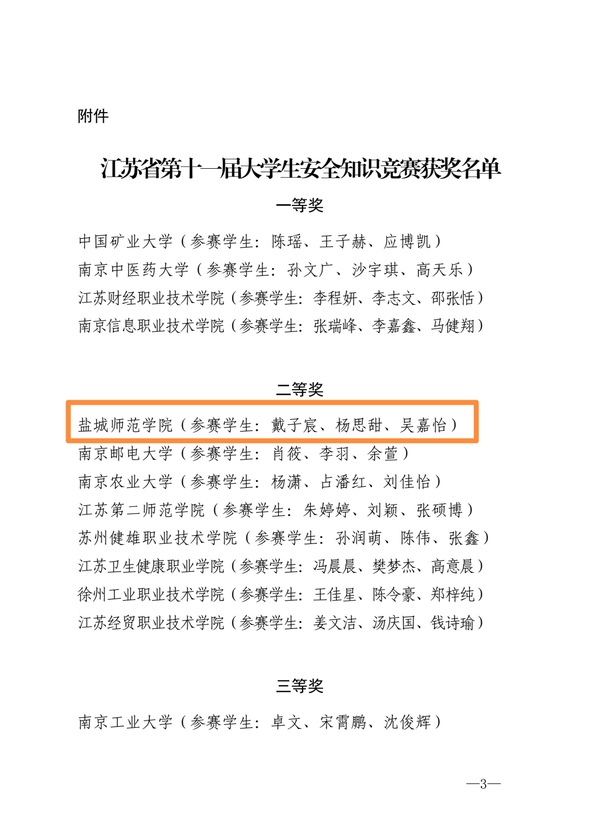 近日,由省教育厅主办、省高教学会保卫研究会承办的“江苏省第十一届大学生安全知识”落下帷幕,beat365马克思主义学院戴子宸、杨思甜、吴嘉怡三名同学组成的校代表队一路过关斩将,最终取得了全省本科组二等奖第一名的好成绩。beat365荣获优秀组织奖。beat365仇华、孙正伟两位老师荣获优秀指导教师。本次比赛设本科组一等奖2个,二等奖4个,三等奖8个。