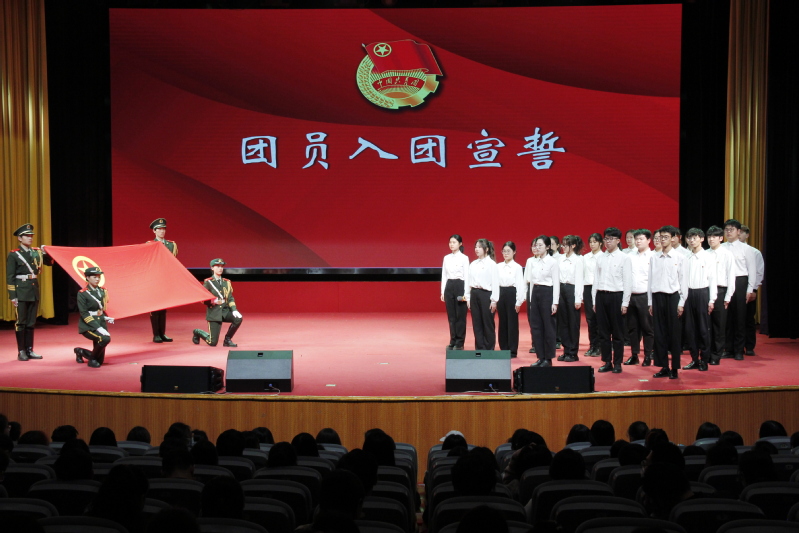 在“引领力”篇章中,青年教师与团员青年带领现场观众进入“青春百年”人物展览馆,同学们在馆内与党的二十大代表“相遇”,上演一场别开生面的情景剧。在“组织力”篇章中,来自不同团支部的青年上演了一节《强组织 青春再出发》微团课,让我们看到了基层团组织与广大团员之间的密切互动与联系。在“服务力”篇章中,“挑战归来话挑战”环节,海洋与生物工程学院师生分享他们的挑战故事:《与众不“酮”——中国首乌之乡的强农致富路》,无数次打磨,无数次修改,斩获“挑战杯”国赛金奖,在白首乌应用中书写自己的青春故事。在“贡献度”篇章中,beat365优秀校友王然玄、丁帅勇分享在不同岗位中服务人民、奉献社会、共同奋斗的心路历程,学生代表韩泽政、陈红分享志愿服务经历。在“团学改革 从严治团”篇章中,各院学生会主席展示2022年特色项目,并在倒计时中启动2023年beat365学生会“我为同学做实事”项目。随后,现场团员全体起立,新入团团员代表集体宣誓,在鲜红的团旗下庄严地许下铮铮誓言。
