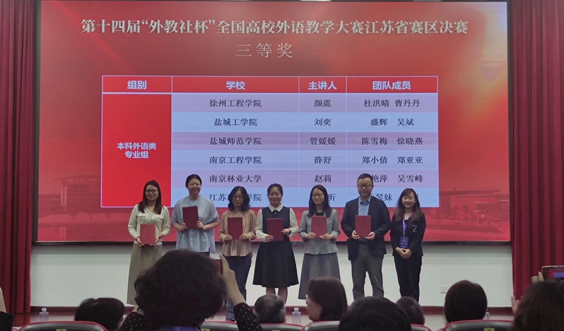 近日,第十四届“外教社杯”全国高校外语教学大赛江苏省赛区决赛在宿迁学院拉开帷幕。决赛采用现场授课和说课形式。经过激烈角逐,外国语学院崔海燕、王巾、管媛媛3位教师脱颖而出,分别荣获本科大学英语视听说组二等奖、本科大学英语综合组二等奖和本科英语专业组三等奖。