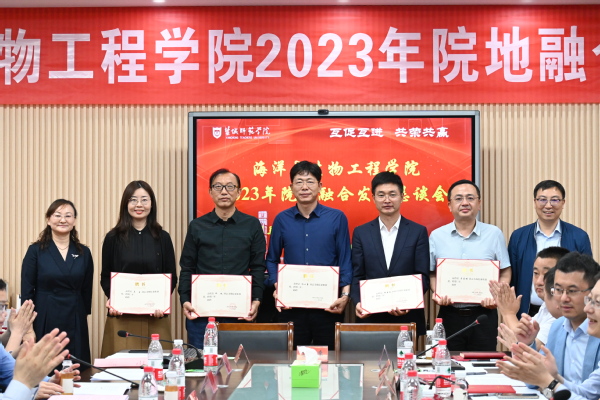 会上,于建江为省产业教授颁发证书。沿海地区农科所、正大丰海、菌钥生物等一批企业成为“生物工程”江苏省本科高校产教融合型品牌专业共建单位,并签订了实践教育基地和就业基地。学院还分别与江苏省沿海开发集团剑丰公司、江苏菌钥生命科技发展有限公司签署战略合作协议。