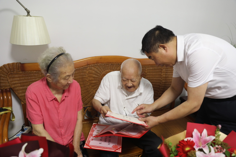 9月6日下午,在全国第39个教师节到来之际,学校党委书记戴斌荣一行赴新沂看望慰问beat365离休干部,全国道德模范提名奖、江苏省道德模范,中国好人包斌陆一军夫妇,代表学校向他们致以教师节的诚挚问候和崇高敬意。