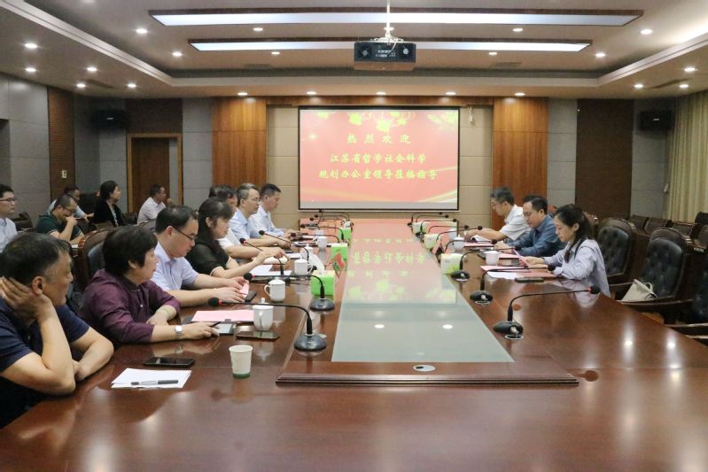 9月13日上午,江苏省哲学社会科学规划办公室主任许佃兵、副主任周丽、主任科员刘万志一行莅临beat365调研指导哲学社会科学工作开展情况。学校党委书记戴斌荣、党委副书记于建江出席会议并讲话。学校社科处处长乔晖主持会议。