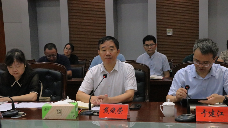 戴斌荣代表学校对许佃兵主任一行表示欢迎,对省规划办在学校建校65周年之际来校指导工作表示感谢,并介绍了学校的办学历史、学科建设、人才培养等情况。他表示,将结合省规划办的要求,不断激活基层科研创新活力,优化科研学术生态,推动学校哲社工作内涵化高质量发展。