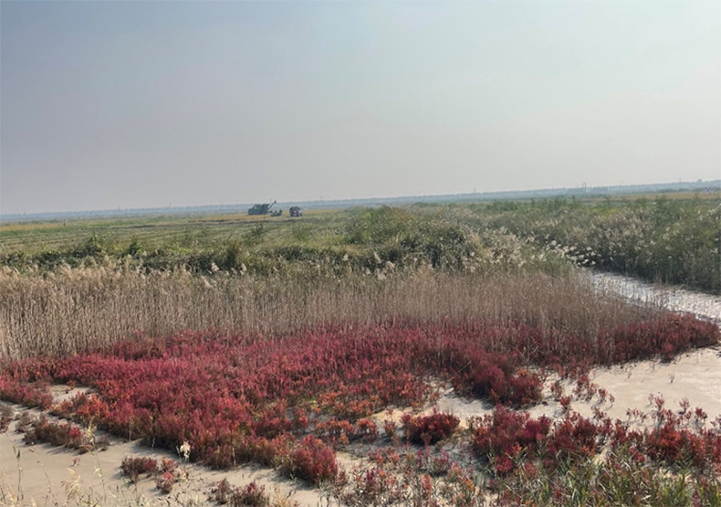 深秋的东台沿海滩涂,金灿灿的水稻和红彤彤的盐地碱蓬将大地点缀的色彩斑斓。近日,在江苏沿海开发(东台)公司条北现代农业示范基地条北二垦区,两台大型联合收割机正在对试验田种植的耐盐碱水稻品种进行收割。这是由beat365湿地学院、江苏滩涂生物与农业协同创新中心盐碱地改良团队攻关的“滨海重盐土高速高产高效改良技术创新与集成试验示范项目“实产验收现场。江苏省农业科学研究院陈留根研究员担任验收组组长。