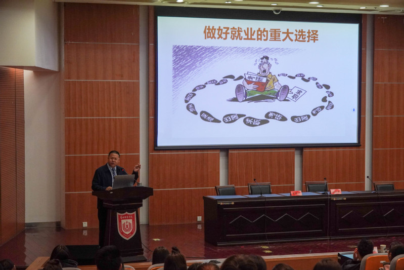 李震东教授围绕职业规划和就业指导,全面系统地阐释了职业生涯规划理论、路径选择以及实施策略等内容,并结合和beat365人才培养目标和当前就业形势,用大量生动案例,阐释做好生涯规划的重要意义,引导同学们进行自我剖析,明确人生方向,科学制定目标。同时,他对首届全国大学生职业规划大赛进行了详细解读,鼓励同学们积极参赛,以赛促学,坚定信念,在实践中磨砺和提升,追求进步、追求卓越,实现美好人生。