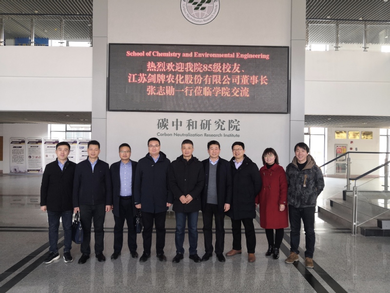 江苏剑牌农化股份有限公司成立于2001年,拥有博士后科研工作站,先后获国家级、省级“科技进步奖”等奖项5个,进入“中国农药企业50强”和“中国化工500强”。张志勋董事长感恩母校的教育与培养,多次受邀回到母校,向师弟师妹分享自身求学创业之路,助力学子们成长成才,同时对学院的专业建设、科学研究和社会服务提供支持与帮助。